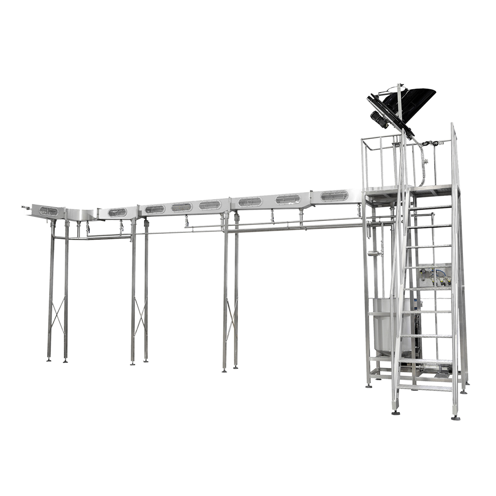 采用兩段直線式清洗,前段對蓋子進(jìn)行藥水噴淋沖洗,后段對蓋子進(jìn)行清水噴淋沖洗;